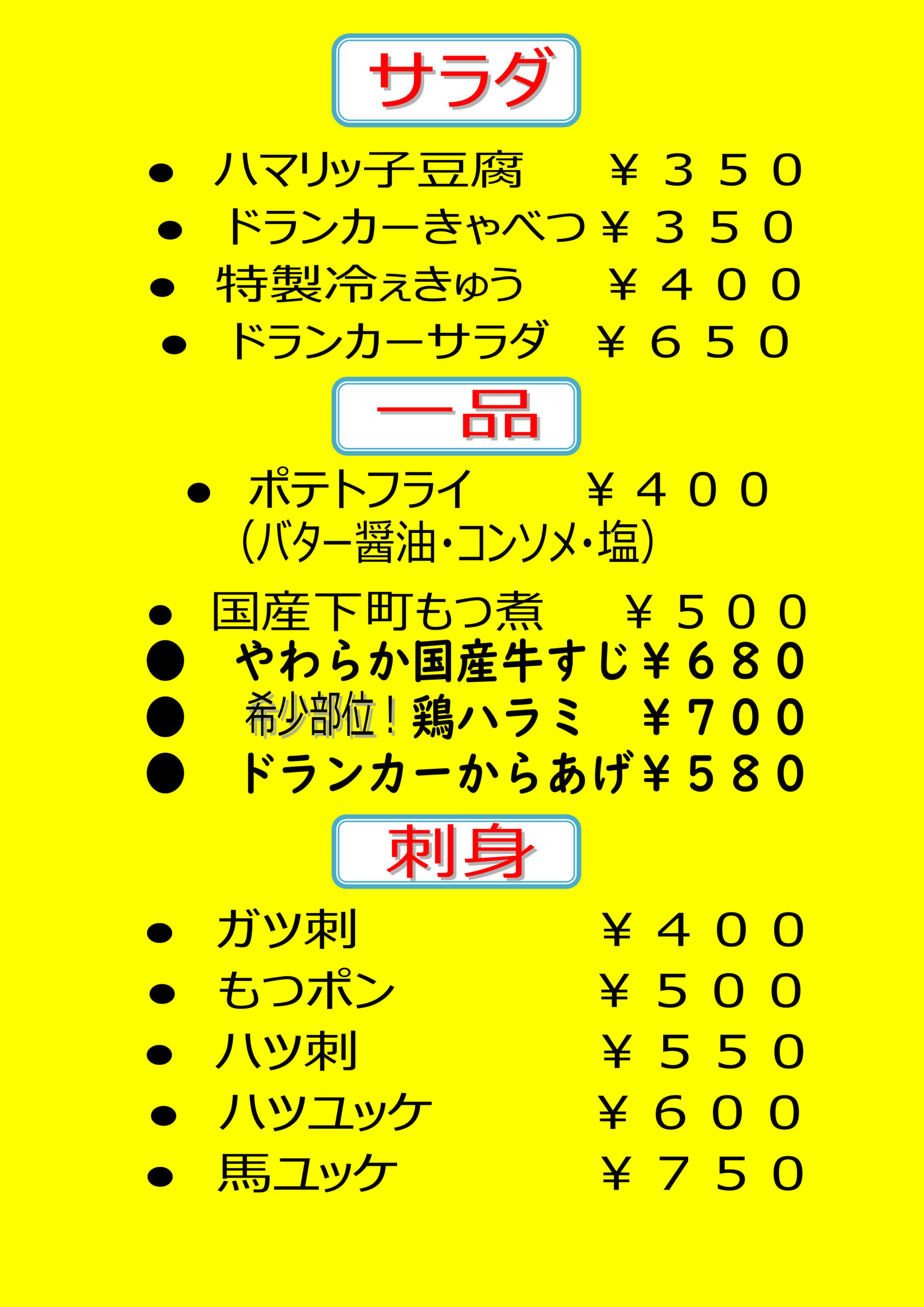 お品書き お飲みもの