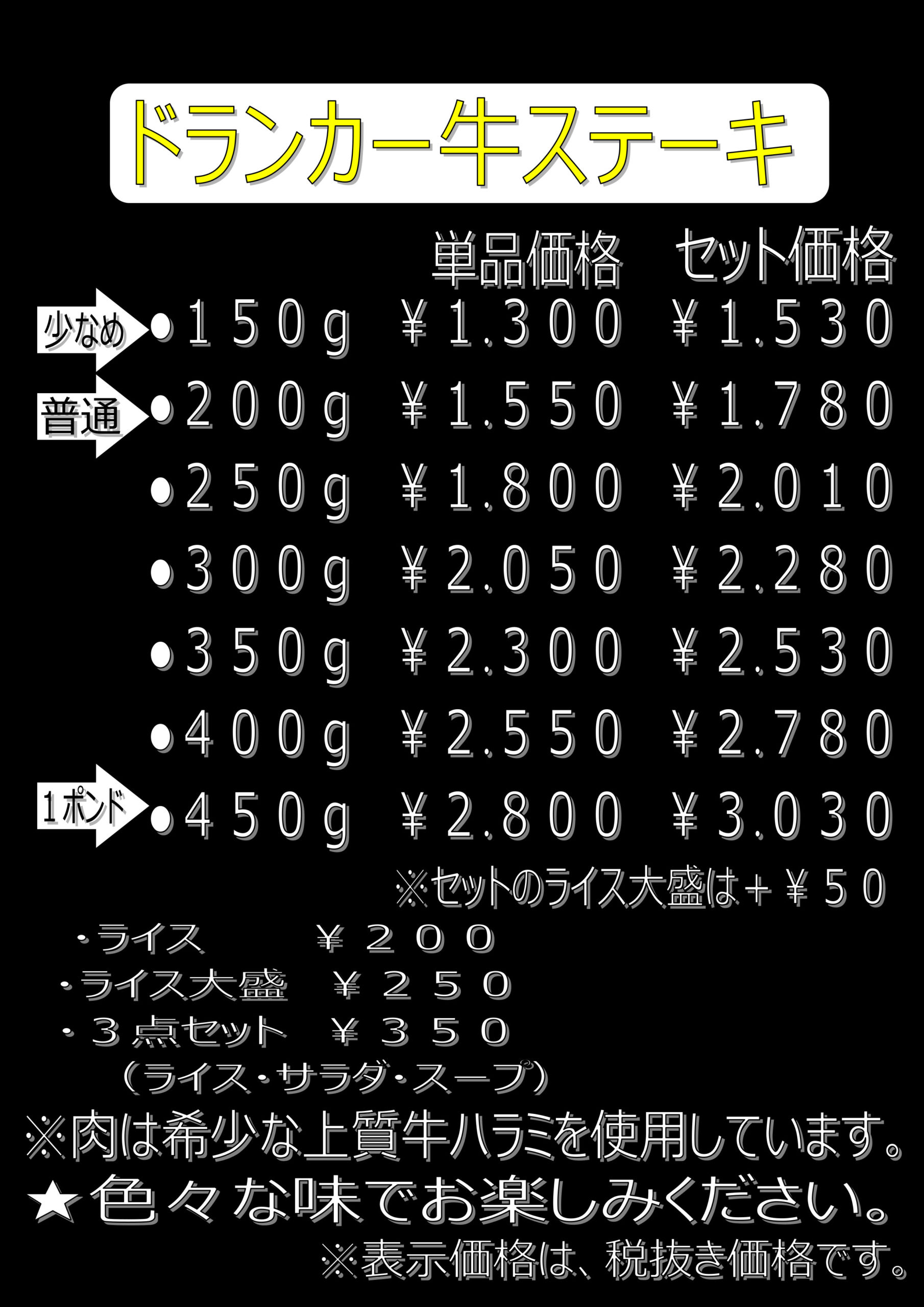 お品書き ステーキ